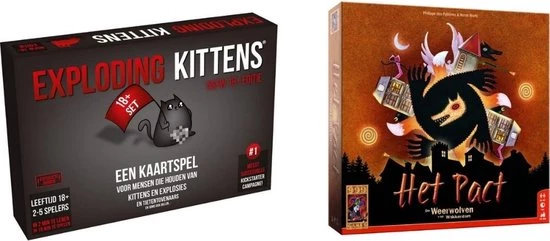 Compleet Weerwolvenpakket voor liefst 47 spelers! Met deze doos haal je in ??n keer alles in huis wat je nodig hebt om De Weerwolven van Wakkerdam met maar liefst 47 personen te kunnen spelen. Naast het basisspel bevat Het Pact de uitbreidingen Volle Maan, Karakters en Het Dorp. Met Weerwolven: Het Pact hoef je je nooit meer af te vragen wat je met een grote groep kunt spelen. Burgers, weerwolven, kwaadaardige en extreem goede karakters, beroepen, gebouwen, alles zit erin om de spannende strijd tussen de burgers en de weerwolven nog onvergetelijker te maken. De verschillende varianten zorgen ervoor dat geen spel hetzelfde is. Weerwolven: Het Pact garandeert vele avonden interactief speelplezier!