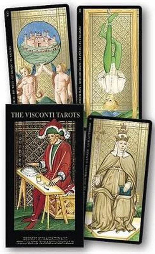 An absolutely stunning display of lavish gold foil and exquisite Renaissance art, this deck is pure magic and mystery! The shimmering gold reflects the light, seducing the intuition and delighting the eye. This deck is a treasure, truly a must-have for all Tarot enthusiasts. Originally commissioned in 1450 by the Duke of Milan, and attributed to Bonifacio Bembo, this is a reproduction of the oldest extant Tarot deck.