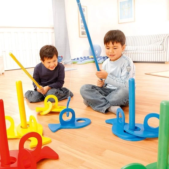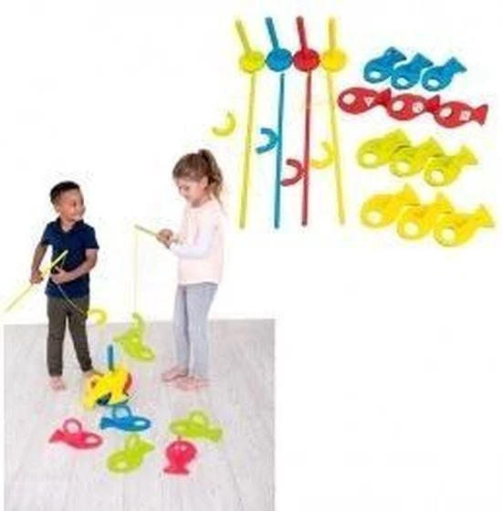 Een tricky behendigheidsspel voor binnen en buiten. Wie lukt het om als eerste 3 vissen van dezelfde kleur te vangen en om de staaf te leggen? Of vang zoveel mogelijk vissen en kijk later op de onderkant hoeveel je punten je hebt verzamelt.