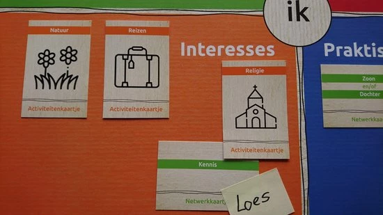 Speelse manier om informatie te vergaren over het sociale netwerk en activiteiten die iemand leuk vindt. Met als doel om het netwerk te kunnen versterken en een zinvolle daginvulling te creeeren. Coaching spel.
