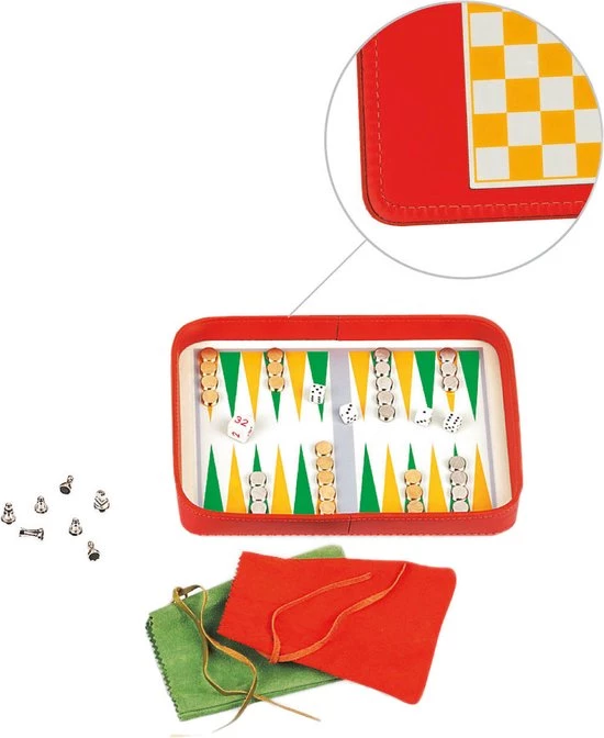 Verveel je geen moment meer met deze luxe spellenset van Dal Negro. Het spelbord is aan twee kanten bruikbaar, zo speel je aan de ene kant een spelletje backgammon en aan de andere kant kan je schaken of dammen. De set wordt compleet geleverd met dobbelstenen, schaakstukken en spelstenen voor het dammen en backgammon. Na gebruik berg je het spelbord en de speelstukken op in de meegeleverde zak. Een mooie spellenset die voor urenlang speelplezier zal zorgen.