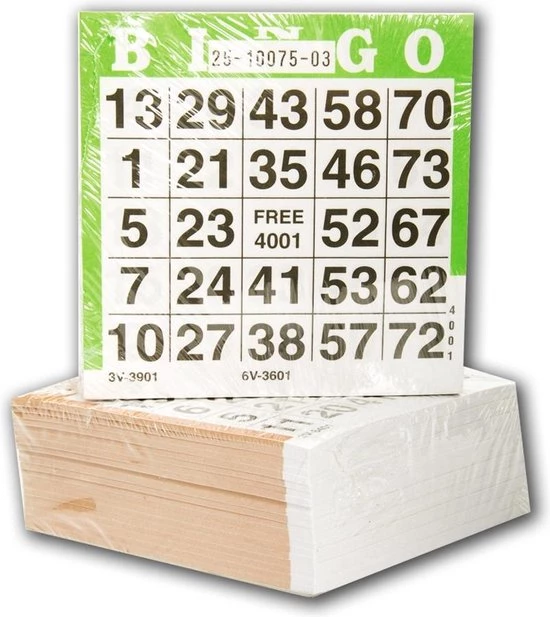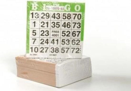 Bingokaarten van 500 vel. Geschikt voor bingo met 75 ballen. De bingokaarten hebben een afmeting van 10 x 10 cm en zijn per vel genummerd.