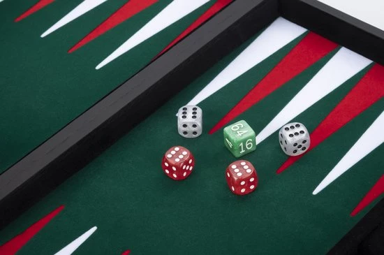 Longfield Backgammon 15″inch Groen, Rood En Wit Ingelegd Vilt