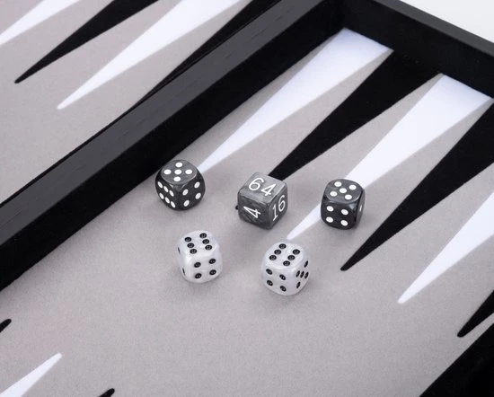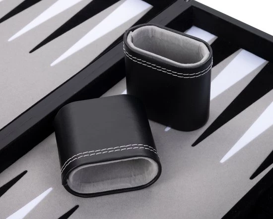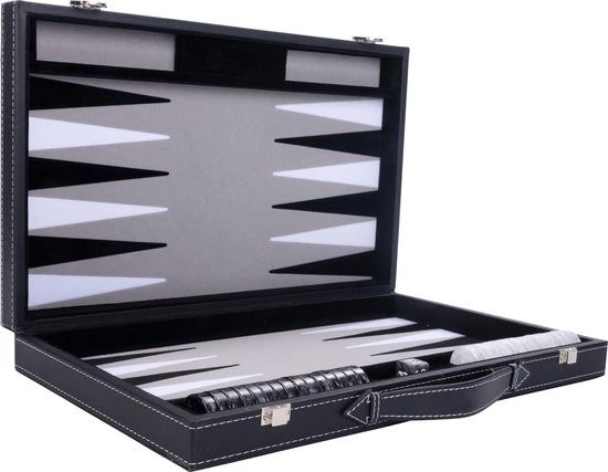 | Verpakkingsinhoud | Backgammon, 18", zwart/wit/grijs, ingelegd., In, luxe, zwarte, koffer. |