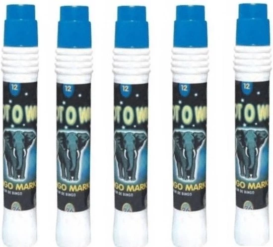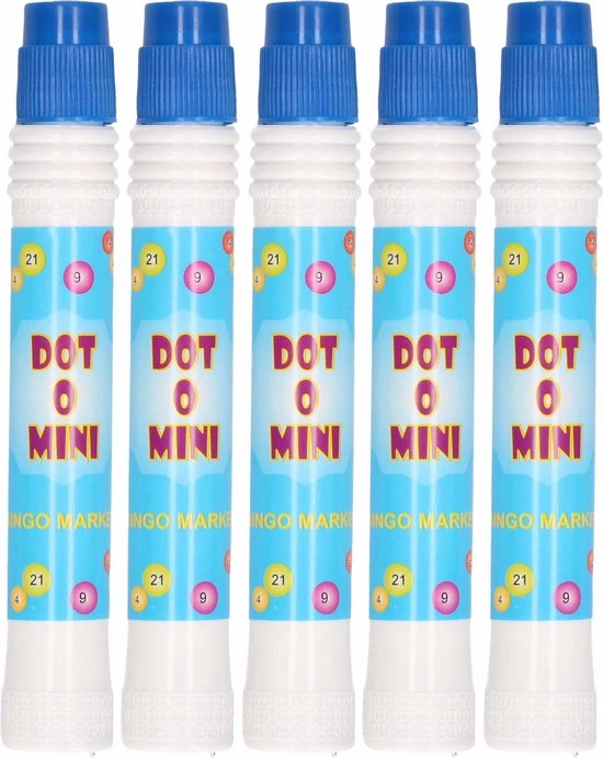 5x Bingo stift blauw. 5x Bingo stiften in de kleur blauw. Met deze grote bingo stiften zet u snel en makkelijk stippen op de nummers met bingo. Let op: dit is geen speelgoed en niet geschikt voor kinderen.