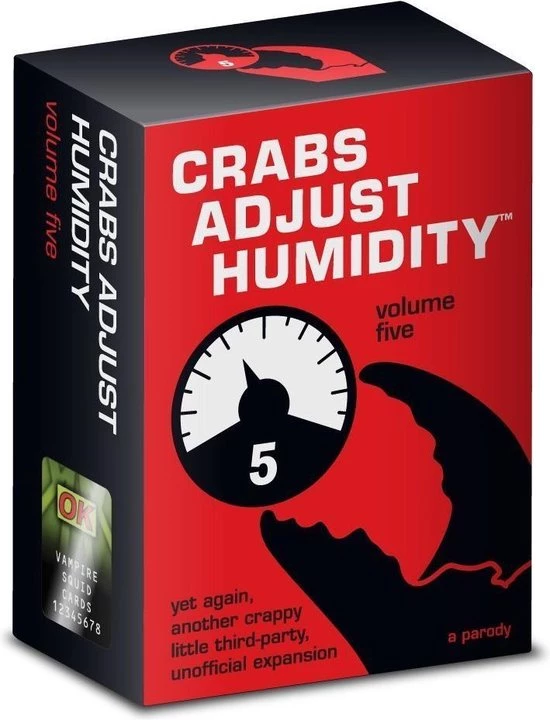 To that end, we bring you Crabs Adjust Humidity: Volume Five. Here’s another 112 cards, stuffed to the gills full of blasphemy, vitriol and the foul gibbering of the irredeemably insane.