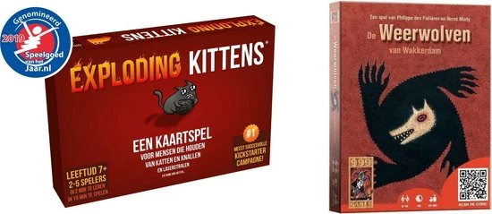Nederlandstalige versie van het populaire kaartspel Exploding Kittens. Exploding Kittens is een fantastisch kaartspel voor mensen die van katten, explosies, laserstralen en soms ook van geiten houden. Dit tactische spel is een variant van Russisch roulette, maar dan met exploderende kittens. Je neemt kaarten van de stapel totdat je ??n van de gevreesde exploderende kittens trekt. Dan heb je meteen verloren. Met alle andere kaarten kun je jezelf verdedigen, aanvallen, een beurt overslaan of de katten afleiden.