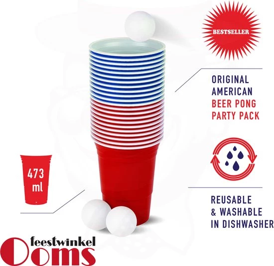 | Verpakkingsinhoud | 25, bekers, 3, ping, pong, ballen |