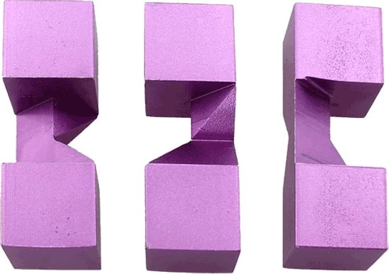 De Slideways Puzzle is gemaakt van stevig paars geanodiseerd metaal en demonteert in drie eenvoudige, identieke stukken. Wanneer ze worden gecombineerd, vormen ze een driedimensionale symmetrische kruisvorm. Een klassieke puzzel die perfect is voor de beginnende puzzelliefhebber of voor de verzamelaar. Eenmaal ontdekt, is de oplossing een bevredigend verslavende beweging die ervoor zorgt dat je hem keer op keer speelt.