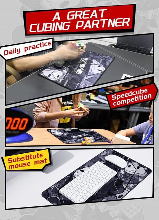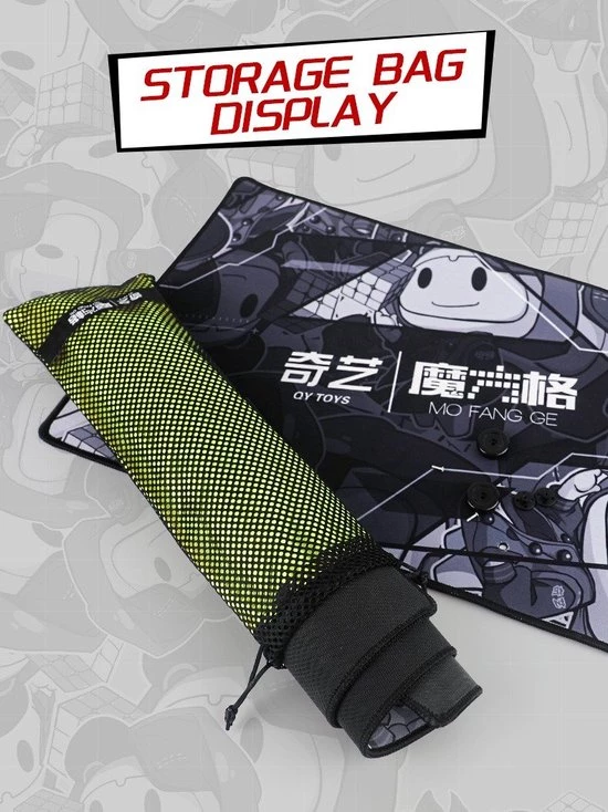 Een luxe kubusmat van QiYi. De V3-mat heeft een redelijk formaat, namelijk 49 cm x 30 cm.