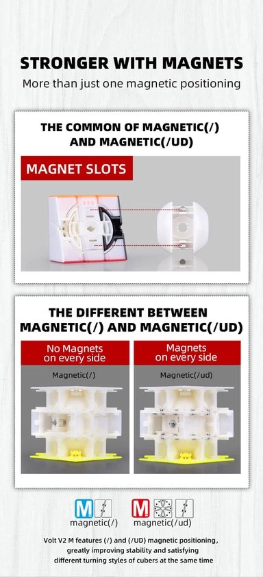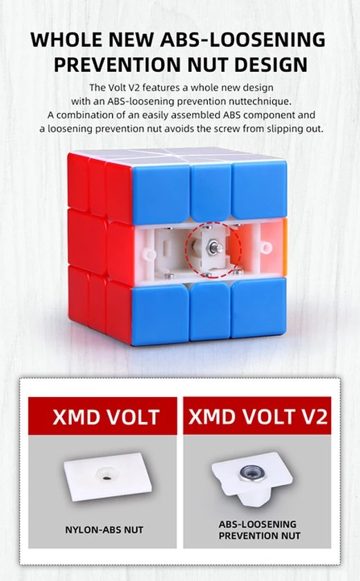 De X-Man Volt Square-1 V2 M Ud (volledig) is een nieuwe bijgewerkte update van de populaire Volt Square-1. Deze vernieuwde versie heeft een duurzamer robuuster ontwerp, wat ook zorgt voor een betere stabiliteit. Daarbij komt dat er in elk van de stukken door de fabriek ge?nstalleerde in zitten, daardoor ook meer nauwkeurigheid bij het draaien ontstaat. En niet te vergeten een metalen en ook weer duurzamer borgmoer ontwerp om core stripping te voorkomen.