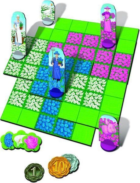 Iedere tuinier heeft helaas maar 1 soort bloemen aangeplant… Er moeten dus ook bloemen van de andere tuiniers geplukt worden, maar dat valt niet altijd mee. De tuiniers beschermen namelijk hun bloemperken onder andere met behulp van een aantal dieren. Bloom: een tactisch familiespel in een kleurrijk decor.