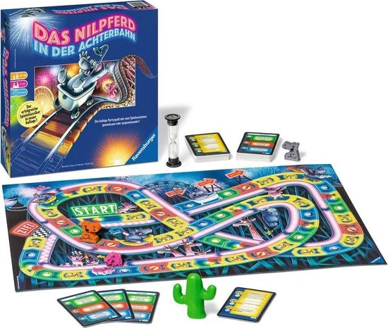 Das Nilpferd in der Achterbahn ist zur?ck! Zum 30-j?hrigen Jubil?um pr?sentiert sich das kultige Partyspiel in einer modernen Neufassung. Das neue Nilpferd bietet 900 abwechslungsreiche Aufgaben und zwei spannende Spielvarianten. Dabei tretet ihr alle gemeinsam gegen die “Drecksau” oder in Teams gegeneinander an. Wer umschreibt, knetet und gurgelt die gesuchten Begriffe so, dass die Mitspieler sie erraten? Findet es heraus und wagt euch auf diese abgedrehte Achterbahnfahrt!