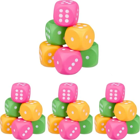 Getallen oefenen makkelijk gemaakt! Met de kleurrijke dobbelstenen van zacht schuimstof kan je de kleintjes gegarandeerd met eenvoudige reken-opdrachtjes stimuleren. De extra lichte dobbelstenen in lichtgroen, oranje en roze zijn geweldig voor in de cr?che en de kleuterklas.