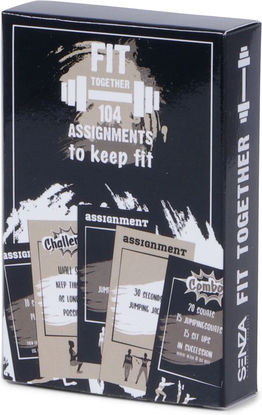 Vind jij het ook zo belangrijk om thuis fit te blijven? Dan is het nieuwe Samen Fit Kaartspel echt iets voor jou! Het spel bestaat uit een set van 52 kaarten met daarop 104 sportieve opdrachten om FIT te blijven. Zorg iedere dag voor een gevarieerde work-out door enkele kaarten te trekken uit het Samen Fit Kaartspel en de beschreven oefeningen uit te voeren. Sport je samen? In het doosje zitten 10 challenge kaarten met opdrachten om elkaar uit te dagen. Jij gaat toch ook de strijd aan? Kies je vandaag voor gemak? Pak een combi kaart voor een kant en klare work-out. De kaarten zijn als volgt verdeeld: – 42 kaarten met 84 oefeningen – 5 Challenge kaarten met 10 uitdagingen – 5 Combi kaarten met 10 combinaties