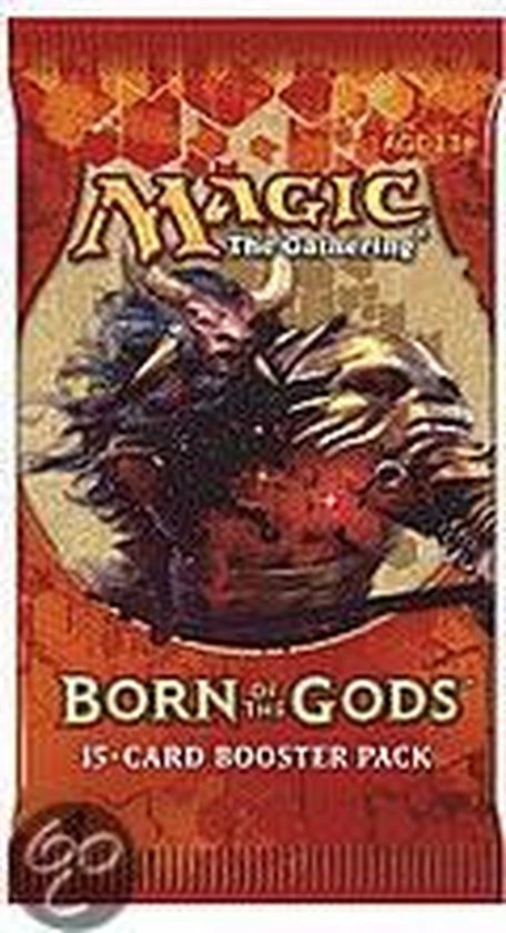 Born of the Gods is het epische vervolg op de zeer goed ontvangen set Theros! De grootse strijd tussen heroes en monsters is nog lang niet gestreden en op het strijdveld wordt opnieuw een grote slag geleverd! Met vijf nieuwe goden en een splinternieuwe Planeswalker belooft Born of the Gods een nieuw hoogtepunt te worden in deze klassieke strijd! Born of the Gods is de tweede set in het Theros Block en bestaat uit 165 kaarten. Een booster Born of the Gods bevat 15 Magic: the Gathering kaarten waarvan 1 rare, 3 uncommons en 11 commons. In ongeveer 1 op de acht boosters vind je geen rare, maar een mythic rare!